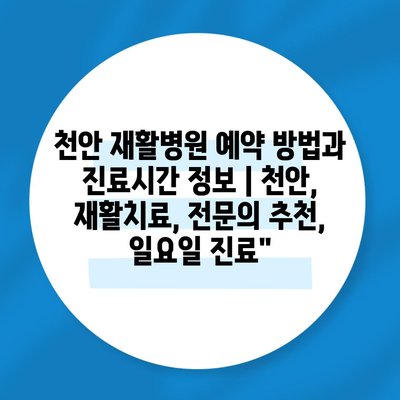 천안 재활병원 예약 방법과 진료시간 정보 | 천안, 재활치료, 전연락 추천, 일요일 진료