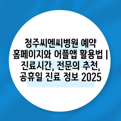 청주씨엔씨병원 예약 홈페이지와 어플앱 활용법 | 진료시간, 전문의 추천, 공휴일 진료 정보 2025