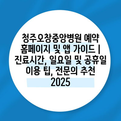 청주오창중앙병원 예약 홈페이지 및 앱 설명서 | 진료시간, 일요일 및 공휴일 이용 팁, 전연락 추천 2025