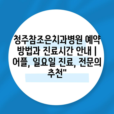청주참조은치과병원 예약 방법과 진료시간 안내 | 어플, 일요일 진료, 전문의 추천”