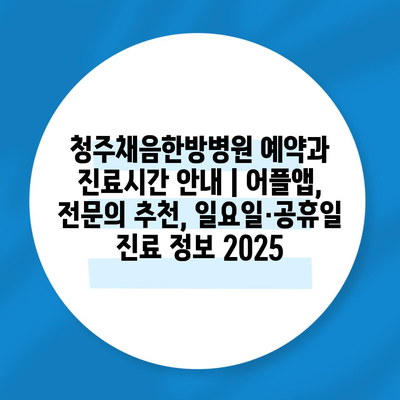 청주채음한방병원 예약과 진료시간 공지 | 어플앱, 전연락 추천, 일요일·공휴일 진료 정보 2025