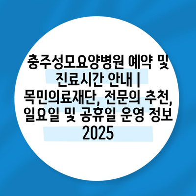 충주성모요양병원 예약 및 진료시간 안내 | 목민의료재단, 전문의 추천, 일요일 및 공휴일 운영 정보 2025