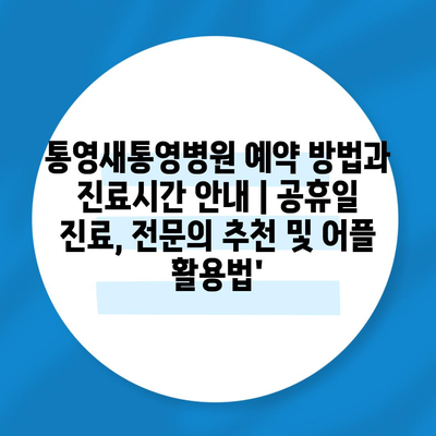 통영새통영병원 예약 방법과 진료시간 공지 | 공휴일 진료, 전연락 추천 및 어플 활용법