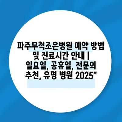 파주무척조은병원 예약 방법 및 진료시간 공지 | 일요일, 공휴일, 전연락 추천, 유명 병원 2025″ 에 대해 자주 묻는 질문 TOP 5