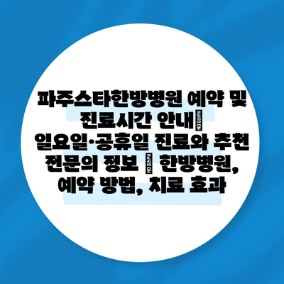 파주스타한방병원 예약 및 진료시간 공지| 일요일·공휴일 진료와 추천 전연락 정보 | 한방병원, 예약 방법, 치료 효과 에 대해 자주 묻는 질문 TOP 5