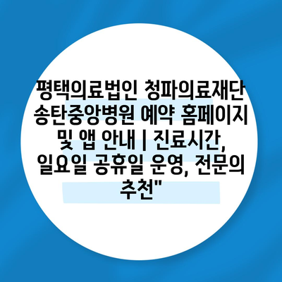 평택의료법인 청파의료재단 송탄중앙병원 예약 홈페이지 및 앱 공지 | 진료시간, 일요일 공휴일 운영, 전연락 추천