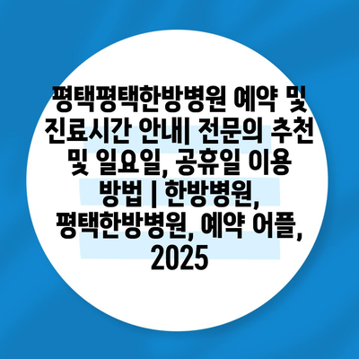 평택평택한방병원 예약 및 진료시간 공지| 전연락 추천 및 일요일, 공휴일 이용 방법 | 한방병원, 평택한방병원, 예약 어플, 2025 에 대해 자주 묻는 질문 TOP 5