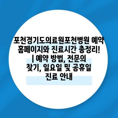 포천경기도의료원포천병원 예약 홈페이지와 진료시간 총정리! | 예약 방법, 전연락 찾기, 일요일 및 공휴일 진료 공지 에 대해 자주 묻는 질문 TOP 5