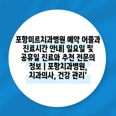 포항미르치과병원 예약 어플과 진료시간 안내| 일요일 및 공휴일 진료와 추천 전문의 정보 | 포항치과병원, 치과의사, 건강 관리’