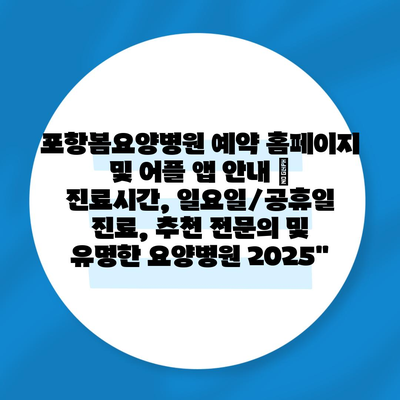 ✅ 포항봄요양병원의 진료시간과 예약 방법을 자세히 알아보세요.