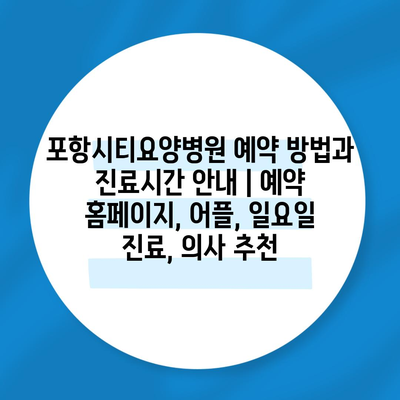 ✅ 포항시티요양병원의 예약 방법과 진료시간을 쉽게 알아보세요.