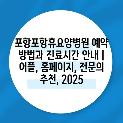 포항포항휴요양병원 예약 방법과 진료시간 공지 | 어플, 홈페이지, 전연락 추천, 2025에 대해 알아보겠습니다.