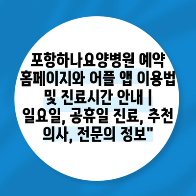포항하나요양병원 예약 홈페이지와 어플 앱 이용법 및 진료시간 공지 | 일요일, 공휴일 진료, 추천 의사, 전연락 정보” 에 대해 자주 묻는 질문 TOP 5