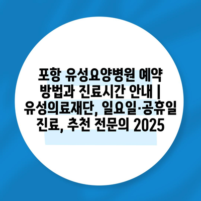 포항 유성요양병원 예약 방법과 진료시간 안내 | 유성의료재단, 일요일·공휴일 진료, 추천 전문의 2025