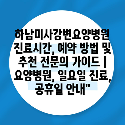 하남미사강변요양병원 진료시간, 예약 방법 및 추천 전문의 가이드 | 요양병원, 일요일 진료, 공휴일 안내”