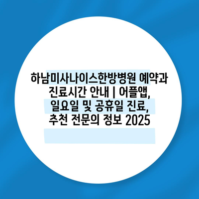 하남미사나이스한방병원 예약과 진료시간 공지 | 어플앱, 일요일 및 공휴일 진료, 추천 전연락 정보 2025