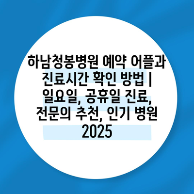 하남청봉병원 예약 어플과 진료시간 확인 방법 | 일요일, 공휴일 진료, 전연락 추천, 인기 병원 2025 에 대해 자주 묻는 질문 TOP 5