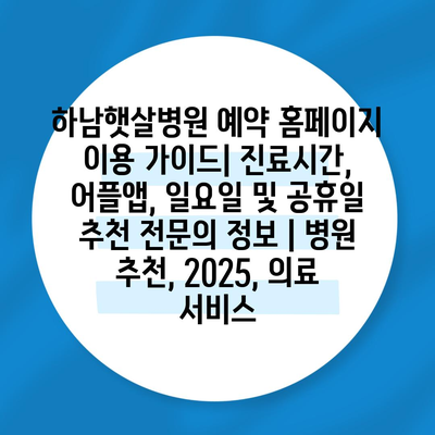 하남햇살병원 예약 홈페이지 이용 설명서| 진료시간, 어플앱, 일요일 및 공휴일 추천 전연락 정보 | 병원 추천, 2025, 의료 서비스 에 대해 자주 묻는 질문 TOP 5
