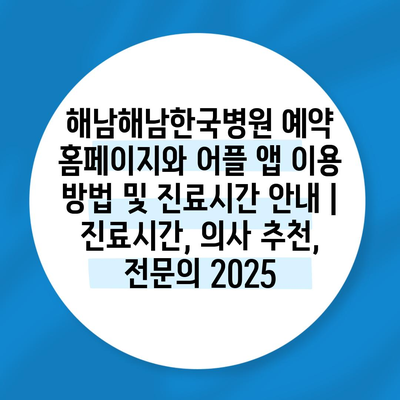 해남해남한국병원 예약 홈페이지와 어플 앱 이용 방법 및 진료시간 공지 | 진료시간, 의사 추천, 전연락 2025를 소개합니다.