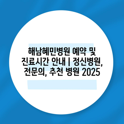 해남혜민병원 예약 및 진료시간 공지 | 정신병원, 전연락, 추천 병원 2025
