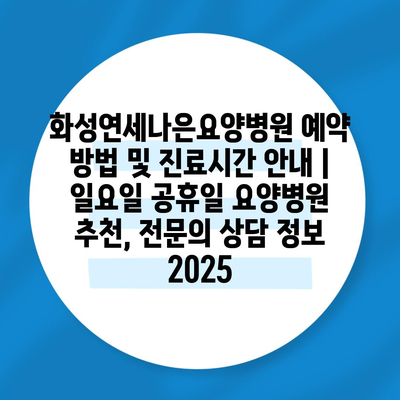 화성연세나은요양병원 예약 방법 및 진료시간 공지 | 일요일 공휴일 요양병원 추천, 전연락 상담 정보 2025 에 대해 자주 묻는 질문 TOP 5