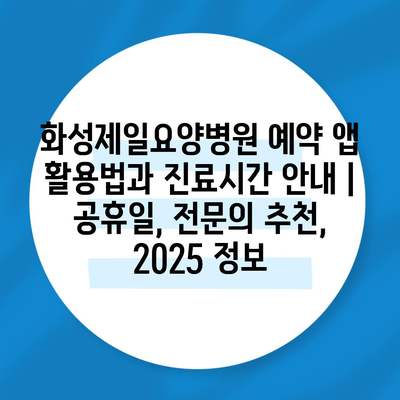 화성제일요양병원 예약 앱 활용법과 진료시간 공지 | 공휴일, 전연락 추천, 2025 정보 에 대해 자주 묻는 질문 TOP 5