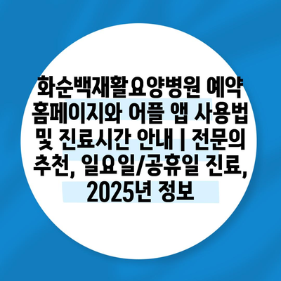 화순백재활요양병원 예약 홈페이지와 어플 앱 사용법 및 진료시간 공지 | 전연락 추천, 일요일/공휴일 진료, 2025년 정보 에 대해 자주 묻는 질문 TOP 5