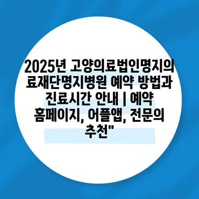 ✅ 고양의료법인명지의료재단의 상세 예약 방법을 지금 알아보세요.