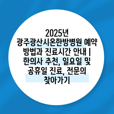 2025년 광주광산시온한방병원 예약 방법과 진료시간 공지 | 한의사 추천, 일요일 및 공휴일 진료, 전연락 찾아가기 에 대해 자주 묻는 질문 TOP 5
