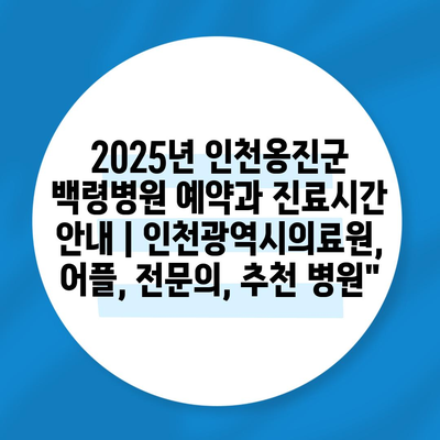 2025년 인천옹진군 백령병원 예약과 진료시간 공지 | 인천광역시의료원, 어플, 전연락, 추천 병원에 대해 자주 묻는 질문 TOP 5