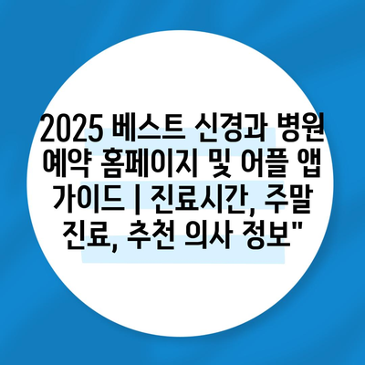 2025 베스트 신경과 병원 예약 홈페이지 및 어플 앱 설명서 | 진료시간, 주말 진료, 추천 의사 정보에 대해 자주 묻는 질문 TOP 5