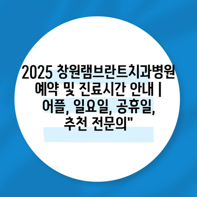 ✅ 창원 램브란트 치과병원의 진료시간과 예약 방법을 자세히 알아보세요.