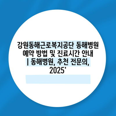 강원동해근로복지공단 동해병원 예약 방법 및 진료시간 안내 | 동해병원, 추천 전문의, 2025′